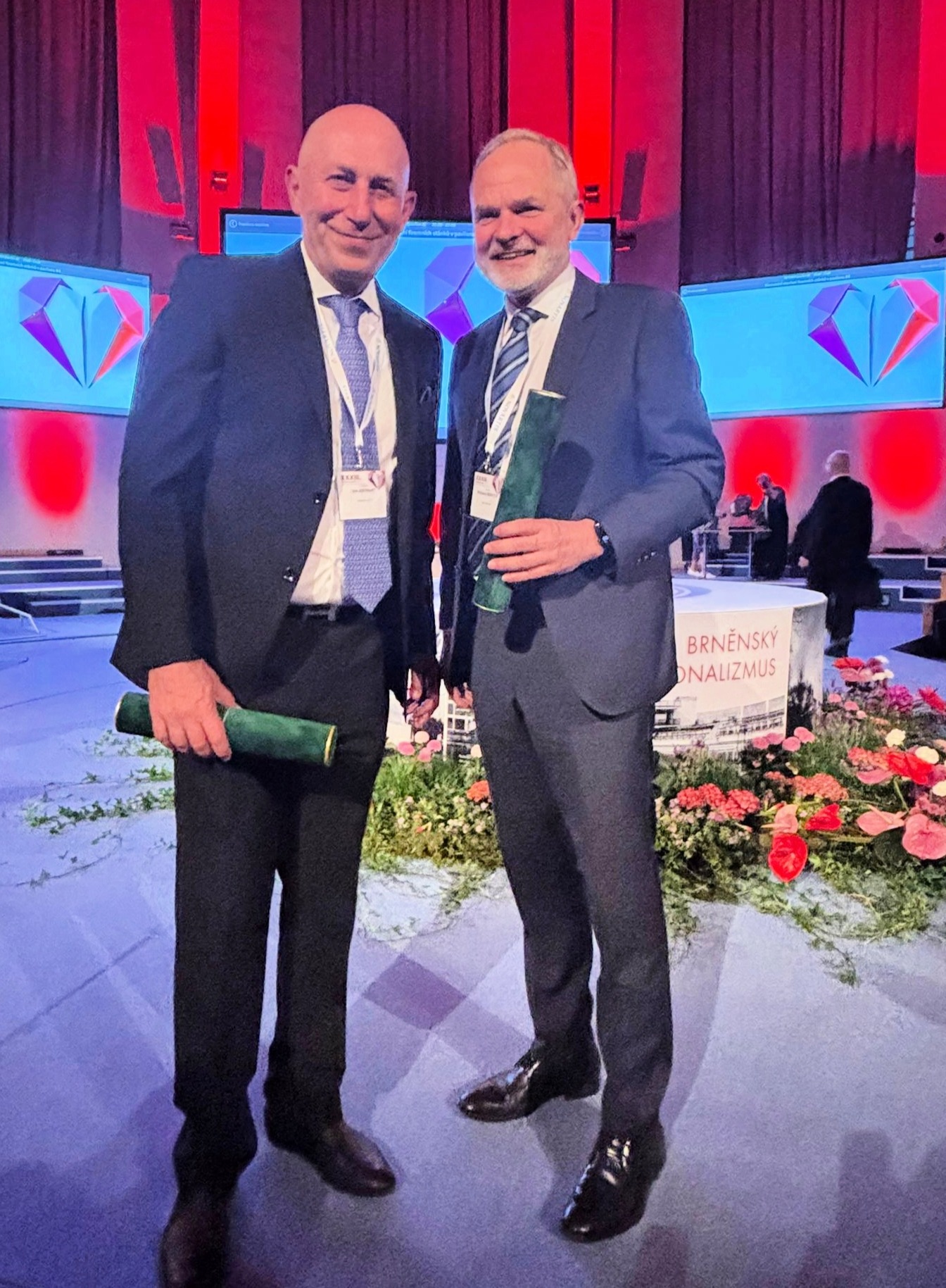 Na XXXIII. Výročním sjezdu České kardiologické společnosti v Brně, který se konal 3.- 6.5. 2025 byli z Kardiologické kliniky FN a LF v Plzni při slavnostním zahájení sjezdu v Rotundě brněnského výstaviště oceněni prof. MUDr. Richard Rokyta, Ph.D., FESC a prof. MUDr. Ivo Bernat, Ph.D., FESC.